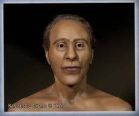 En regardant ce portrait, découvrez comment le buste a été réalisé à l'université de Liverpool à partir des données de la momie de Ramsès II, notamment son crâne puis remodelé avec l'IA. Nous avons rajouté habillage à partir d'une images déjà connue, elle même générée par l'IA ( némes, pectoral et cobra protecteur )